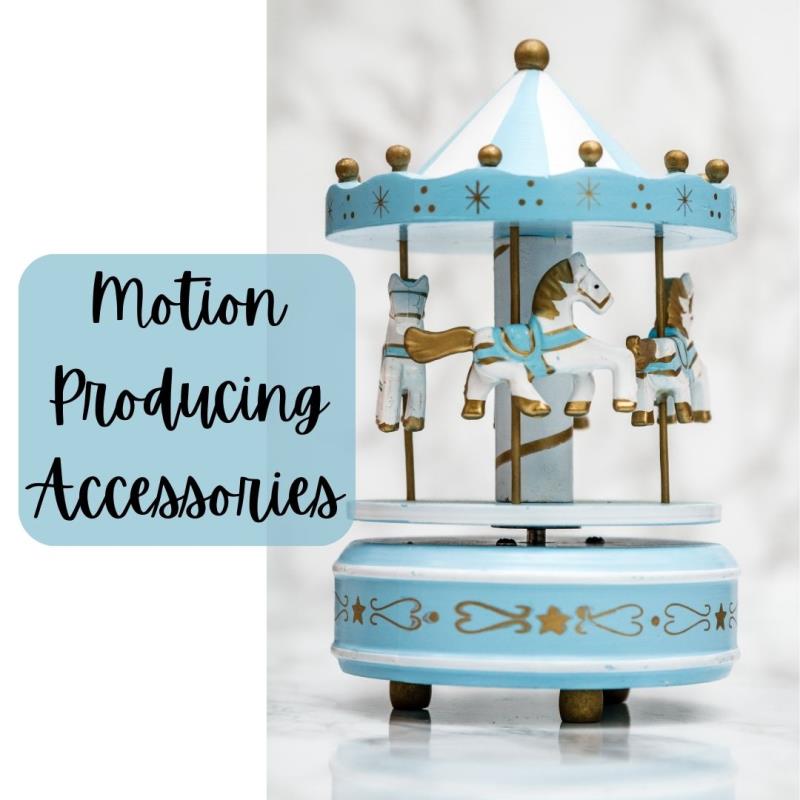 Motion Producing Animation Accessories for Windup Musical Movements. Fit Sankyo and Yun Sheng music box mechanisms. Easy to install.