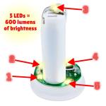 The 5 LED lights strategically placed delivers 600 lumens of brightness. That's 10x brighter than most tea lights!